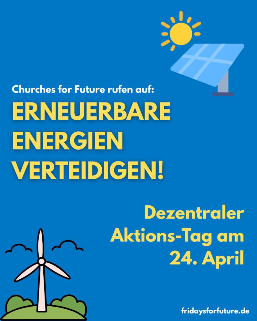 Als Evangelische Kirche von Westfahlen (EKvW) haben wir uns das Ziel gesetzt, bis 2035 90% unserer TGH-Emissionen zu reduzieren. Um dieses Ziel zu erreichen, brauchen wir jetzt politische Weichenstellungen für mehr Tempo bei Sonnen und Wind!