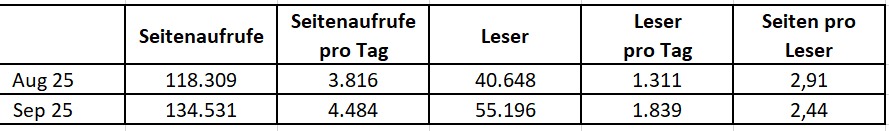 Auch wenn die Zahl der Seitenaufrufe pro Besuch mit 2,44 Klicks etwas unter dem gewohnten Schnitt von 3,0 liegt, zeigt sich doch: Unsere Inhalte erreichen viele Menschen, stoßen auf Interesse und werden gezielt aufgerufen. Das ist für uns eine wichtige Bestätigung.