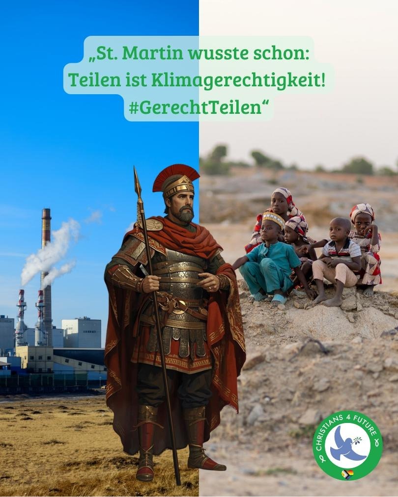 St. Martin sah einen Bedürftigen, teilte seinen Mantel – nicht nur symbolisch, sondern konkret: Eine Handlung der Nächstenliebe, die das eigene Wohl mit dem fremden Wohl verband. In ähnlicher Weise heißt es, mit Blick auf die Klimakrise: Teilen ist Gerechtigkeit.
