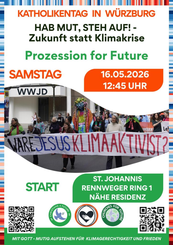Als CHRISTIANS FOR FUTURE werden wir auf dem Katholik*innentag in Würzburg verschiedene Veranstaltungen und Kontaktmöglichkeiten anbieten:
