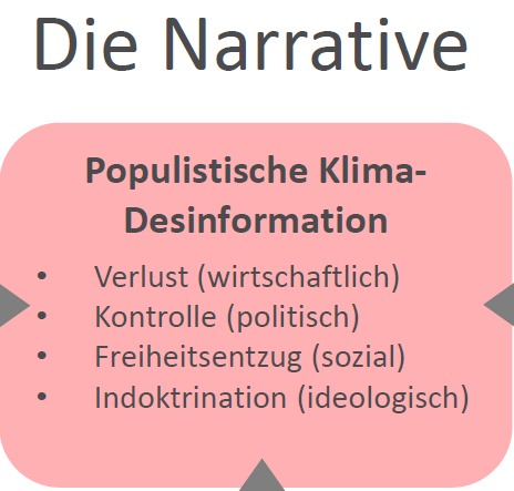 Populistische Klima-Desinformation zeichnet sich dadurch aus, dass komplexe politische und rechtliche Sachverhalte stark vereinfacht und emotionalisiert werden, um bestimmte politische Botschaften zu verstärken. Im Fall des GMG: