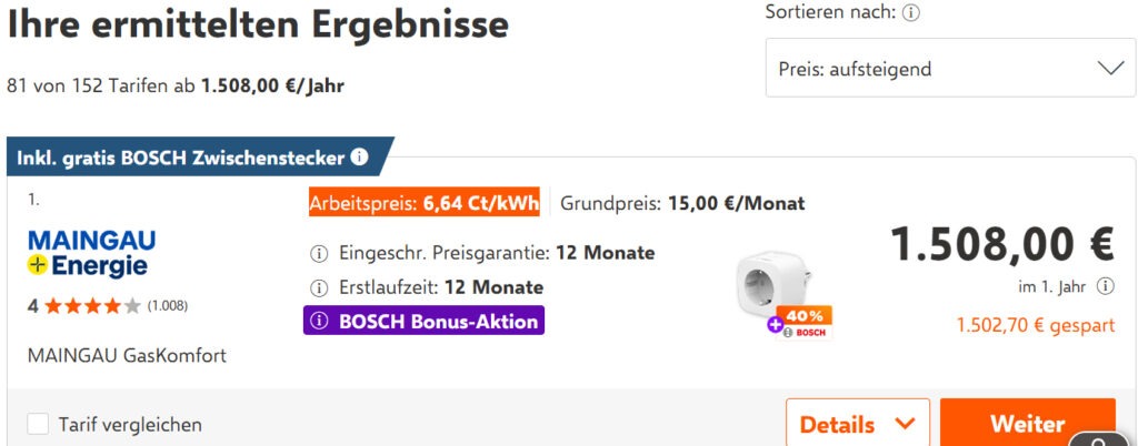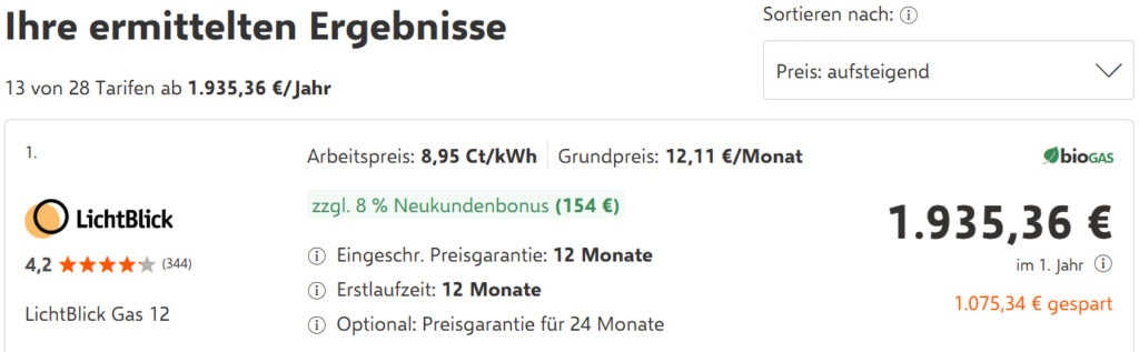 Eine aktuelle Auswertung am 03.03.2026 beim Verbleichportal Verivox zeigt die Mehrkosten für 20.000 kWh Biogas.