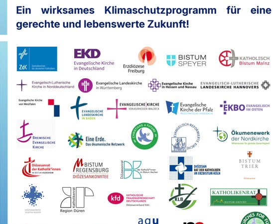 62 kirchliche Akteure fordern wirksames und sozial gerechtes Klimaschutzprogramm von der Bundesregierung Ein wirksames Klimaschutzprogramm für einegerechte und lebenswerte Zukunft! Mit der heutigen Veröffentlichung des gemeinsamen Appells „Ein wirksames Klimaschutzprogramm“ setzt ein breites Bündnis christlicher Akteure ein deutliches Signal an Politik und Gesellschaft. Wir fordern gemeinsam mit über 60 kirchlichen Akteuren ein ambitioniertes, wirksames und … CC4F unterstützt kirchlichen Klimaschutz-Appell weiterlesen