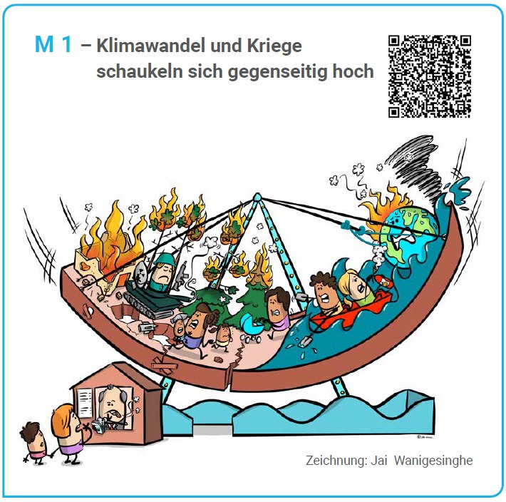 Auf Seite 2 lernen die Schüler:innen die Zusammenhänge von Klimawandel, Krieg und Frieden zu erläutern. Sie ordnen die Auswirkungen militärischer Emissionen politisch ein und arbeiten an Beispielen die Umweltfolgen von Kriegen heraus.