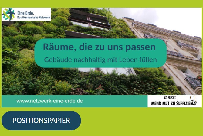 Initiative des Ökumenischen Netzwerks „EINE ERDE“ Ohne Verringerung unseres Energie- und Ressourcenverbrauchs werden wir die Klimaziele nicht erreichen. Und dennoch scheint das Thema Suffizienz als zentrales Nachhaltigkeitsprinzip in der politischen Debatte keine Rolle zu spielen. Eine Erde fordert daher ein Umdenken in der Politik. Wir nehmen dazu drei konkrete Politikbereiche in den Blick, die auch für uns als kirchliche Institutionen von großer … Mehr Suffizienz beim Wohnen – Gebäude nachhaltig mit Leben füllen weiterlesen