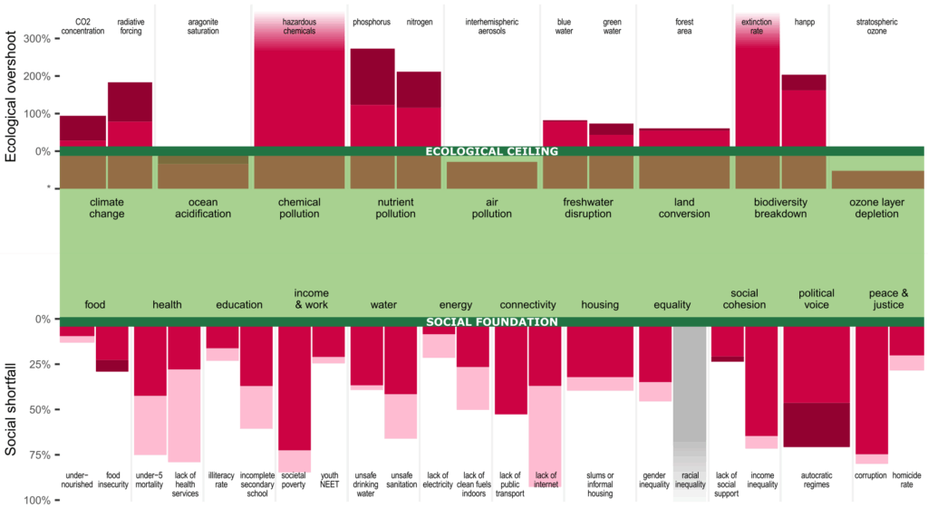 Doughnut of social and planetary boundaries monitors a world out of balance