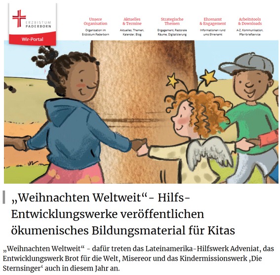 „Weihnachten Weltweit“ begleitet Kindergärten und -tagesstätten durch die Adventszeit, um Kindern von drei bis sieben Jahren die Weihnachtsbotschaft zu erzählen. Die Aktion ermöglicht Kindern einen Perspektivwechsel, indem sie verschiedene Formen und Bräuche des Weihnachtsfestes weltweit kennenlernen. „So erleben sie schon in der Kita eine Verbundenheit zu Kindern in aller Welt“, erklärt Martina Kraus vom Kindermissionswerk ‚Die Sternsinger‘ und verantwortliche Redakteurin für das neue Material „Engelchen auf Madagaskar“.